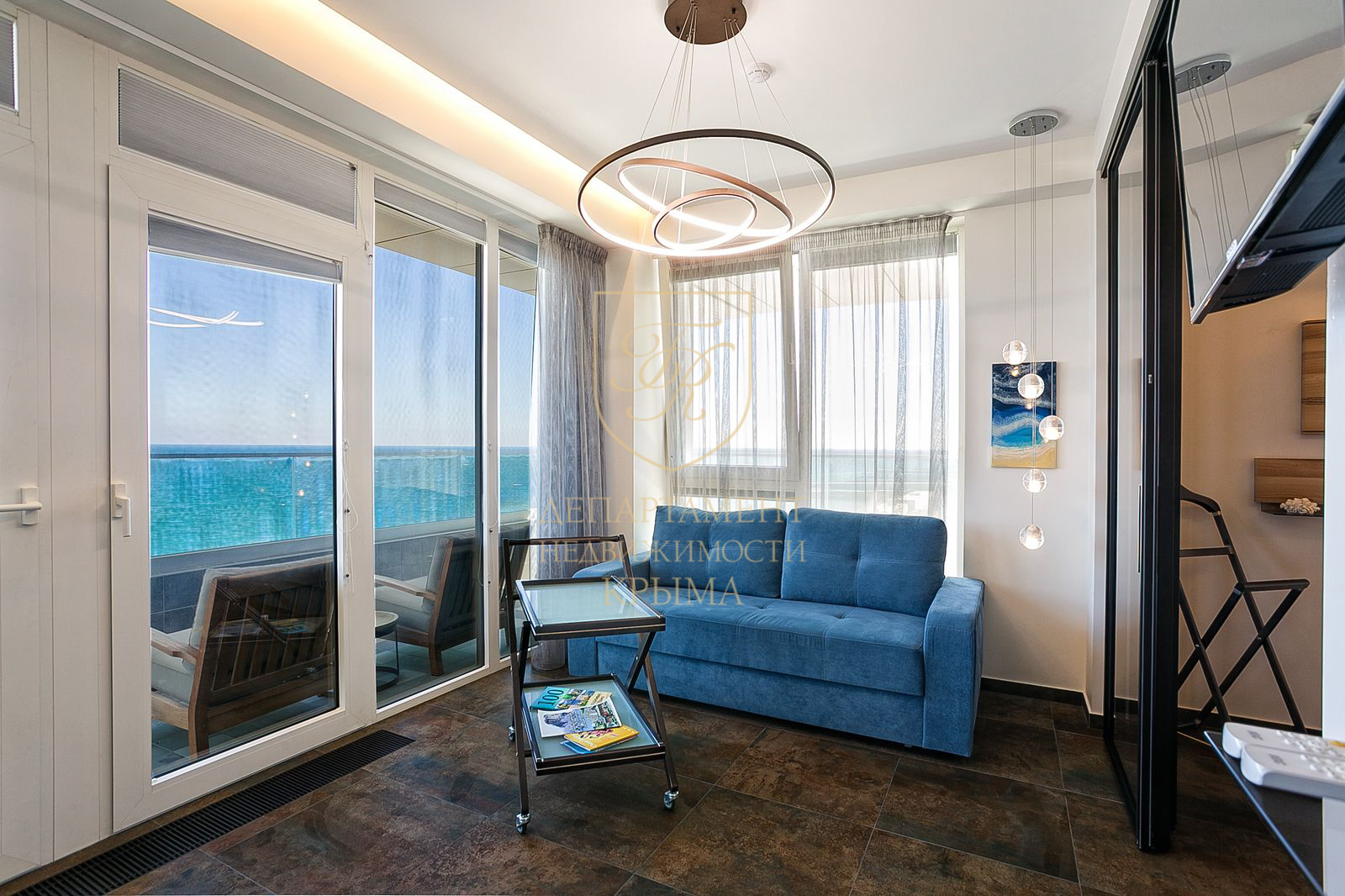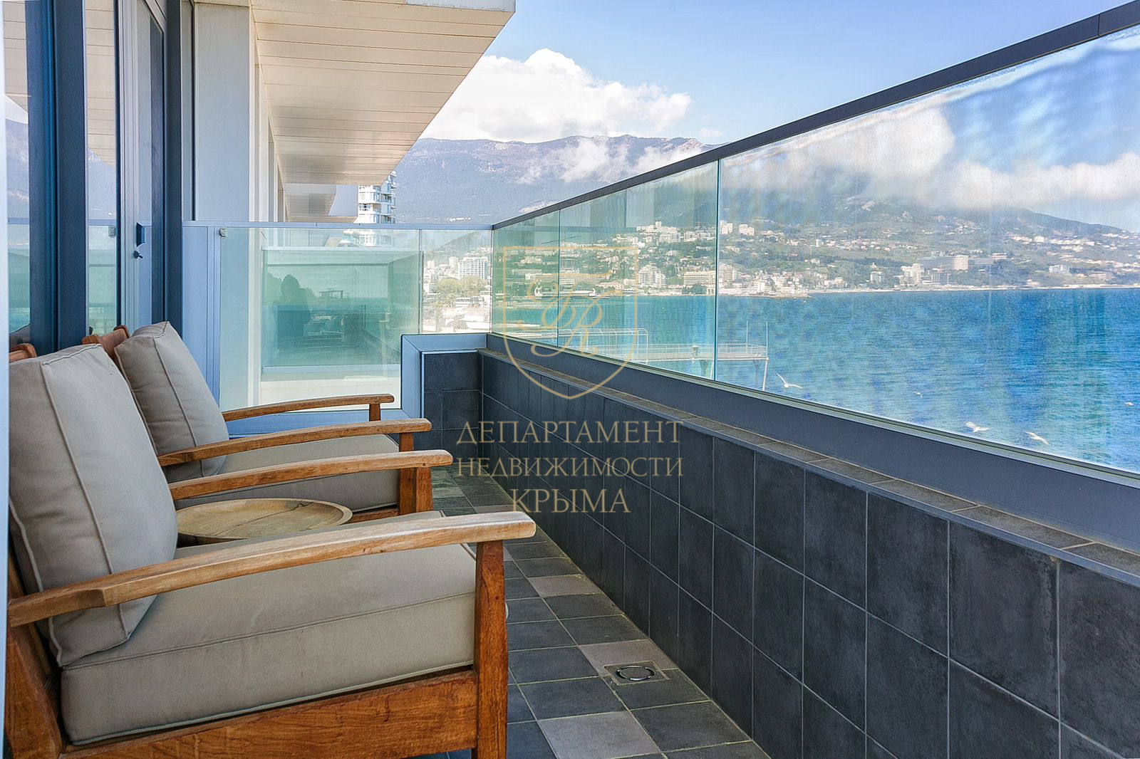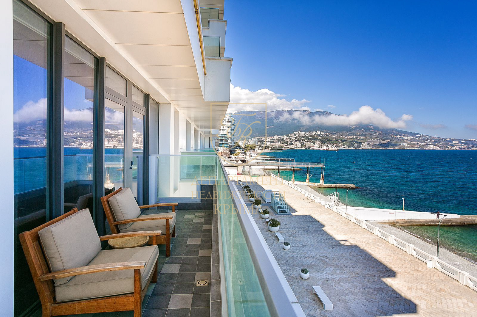 В продаже эксклюзивные апартаменты в комплексе «Лето». Общая площадь 58 м². В апартаментах выполнен дизайнерский ремонт. *Планировочное решение:* - Отдельная спальня, - кухня-гостинная с панорамным видом, - ванная комната, - балкон со стеклянным ограждением и потрясающим видом на море, горы, Ялтинскую набережную. Самая главная «фишка» в этих апартаментах - возможность встречать рассветы, не вставая с кровати. А также солнце очень «удачное»: до 12 утра оно светит прямо, можно безопасно загорать, а потом уходит за угол, поэтому не бывает в помещении нестерпимо душно или жарко. При этом светло весь день. Комплекс «Лето» в одной из самых востребованных локаций Ялты - Приморском парке. Первая береговая линия. Современный престижный комплекс. Консьерж. Видеонаблюдение. Прямой выход на пляж. Также несомненным плюсом является наличие развитой инфраструктуры: в шаговой доступности рестораны, магазины, СПА, набережная для прогулок. *Документы РФ. Быстрый выход на сделку.*