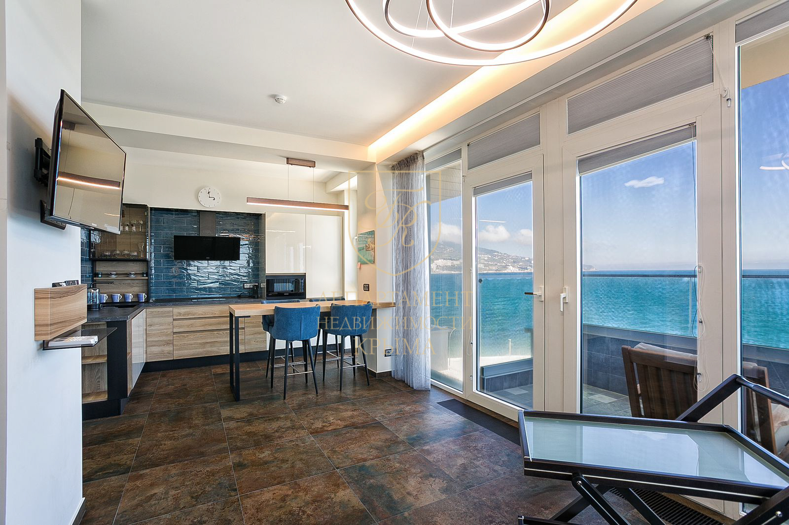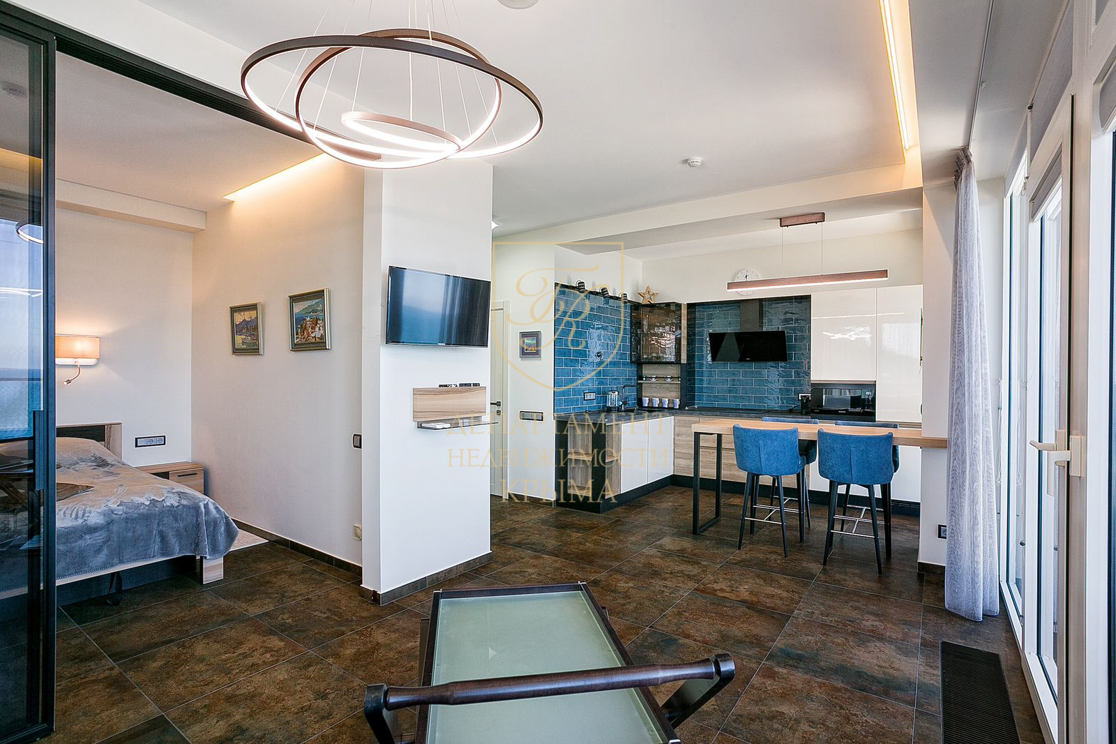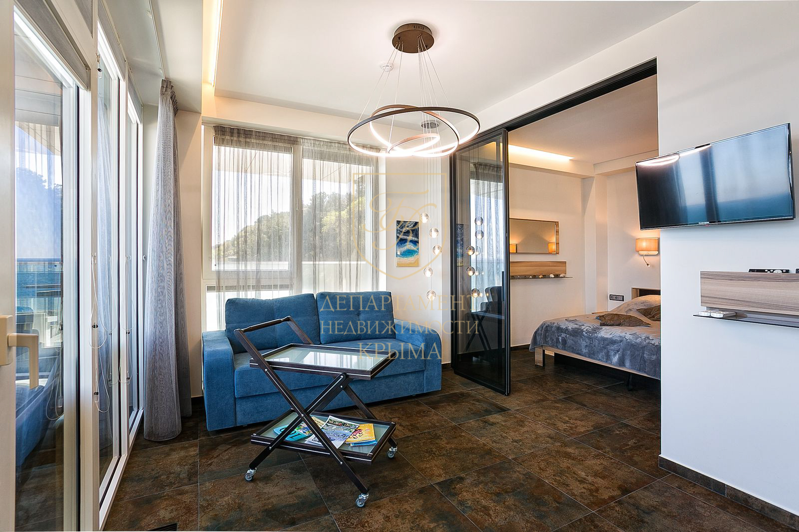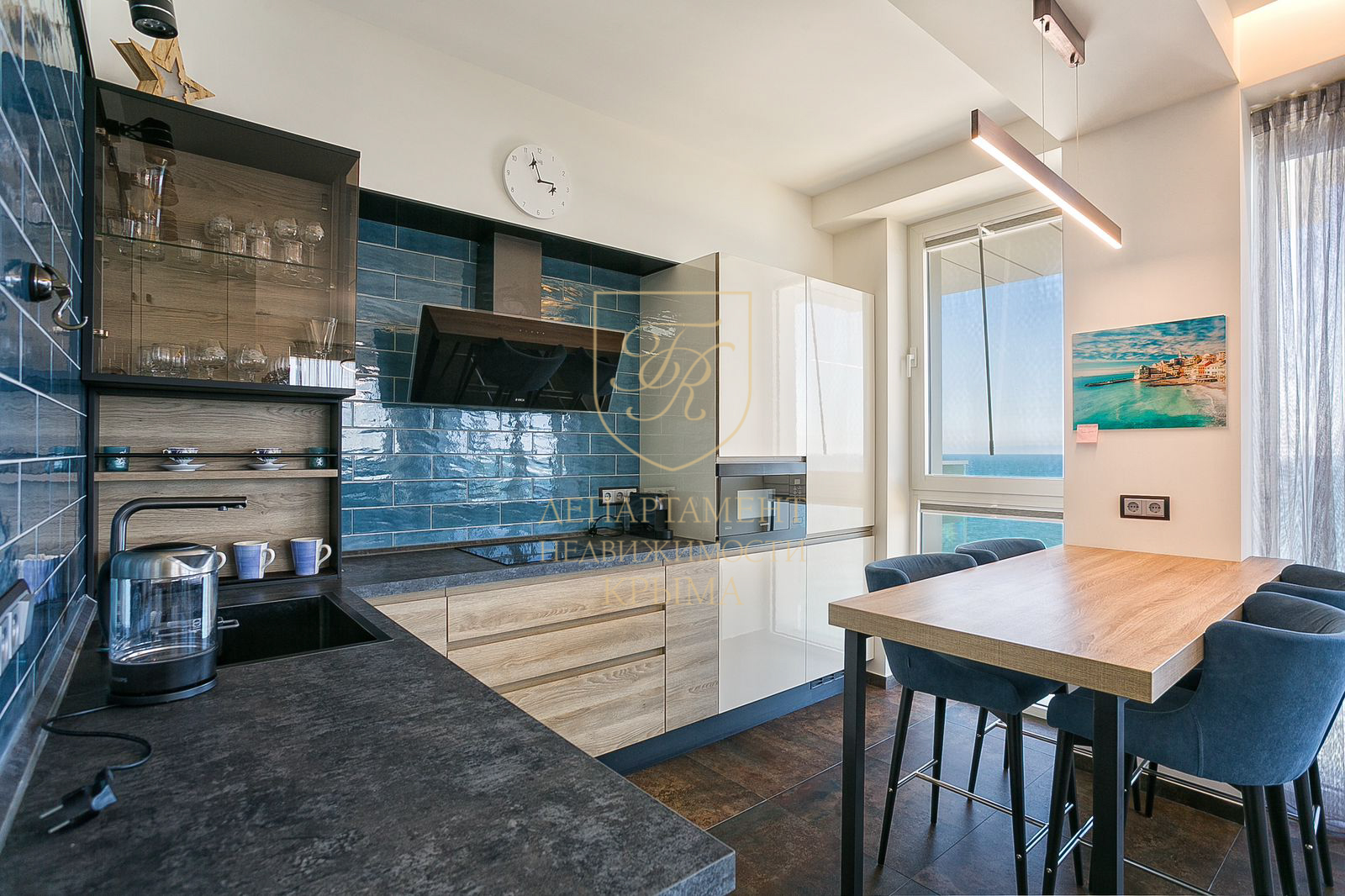 В продаже эксклюзивные апартаменты в комплексе «Лето». Общая площадь 58 м². В апартаментах выполнен дизайнерский ремонт. *Планировочное решение:* - Отдельная спальня, - кухня-гостинная с панорамным видом, - ванная комната, - балкон со стеклянным ограждением и потрясающим видом на море, горы, Ялтинскую набережную. Самая главная «фишка» в этих апартаментах - возможность встречать рассветы, не вставая с кровати. А также солнце очень «удачное»: до 12 утра оно светит прямо, можно безопасно загорать, а потом уходит за угол, поэтому не бывает в помещении нестерпимо душно или жарко. При этом светло весь день. Комплекс «Лето» в одной из самых востребованных локаций Ялты - Приморском парке. Первая береговая линия. Современный престижный комплекс. Консьерж. Видеонаблюдение. Прямой выход на пляж. Также несомненным плюсом является наличие развитой инфраструктуры: в шаговой доступности рестораны, магазины, СПА, набережная для прогулок. *Документы РФ. Быстрый выход на сделку.*